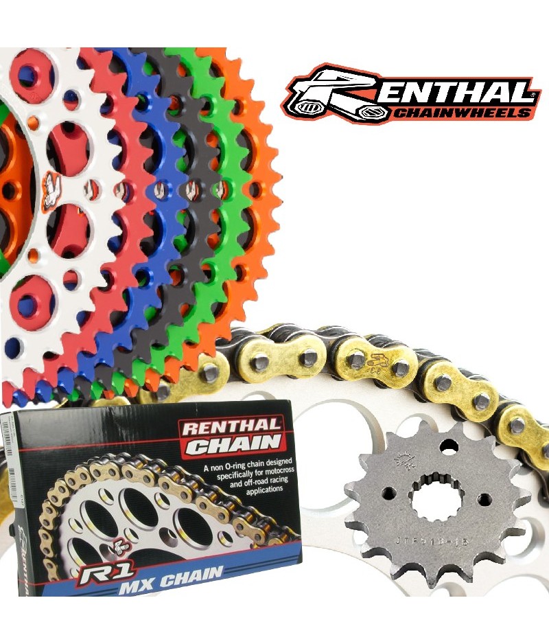 Verižni set Renthal zagotavlja izjemno vzdržljivost, natančen prenos moči in dolgo življenjsko dobo. Vključuje zlato verigo Renthal, kaljeni jekleni sprednji zobnik in aluminijast zadnji zobnik, ki skupaj tvorijo popolno kombinacijo za zahtevne vožnje. Idealen za vse, ki iščejo najvišjo stopnjo zanesljivosti in zmogljivosti.
